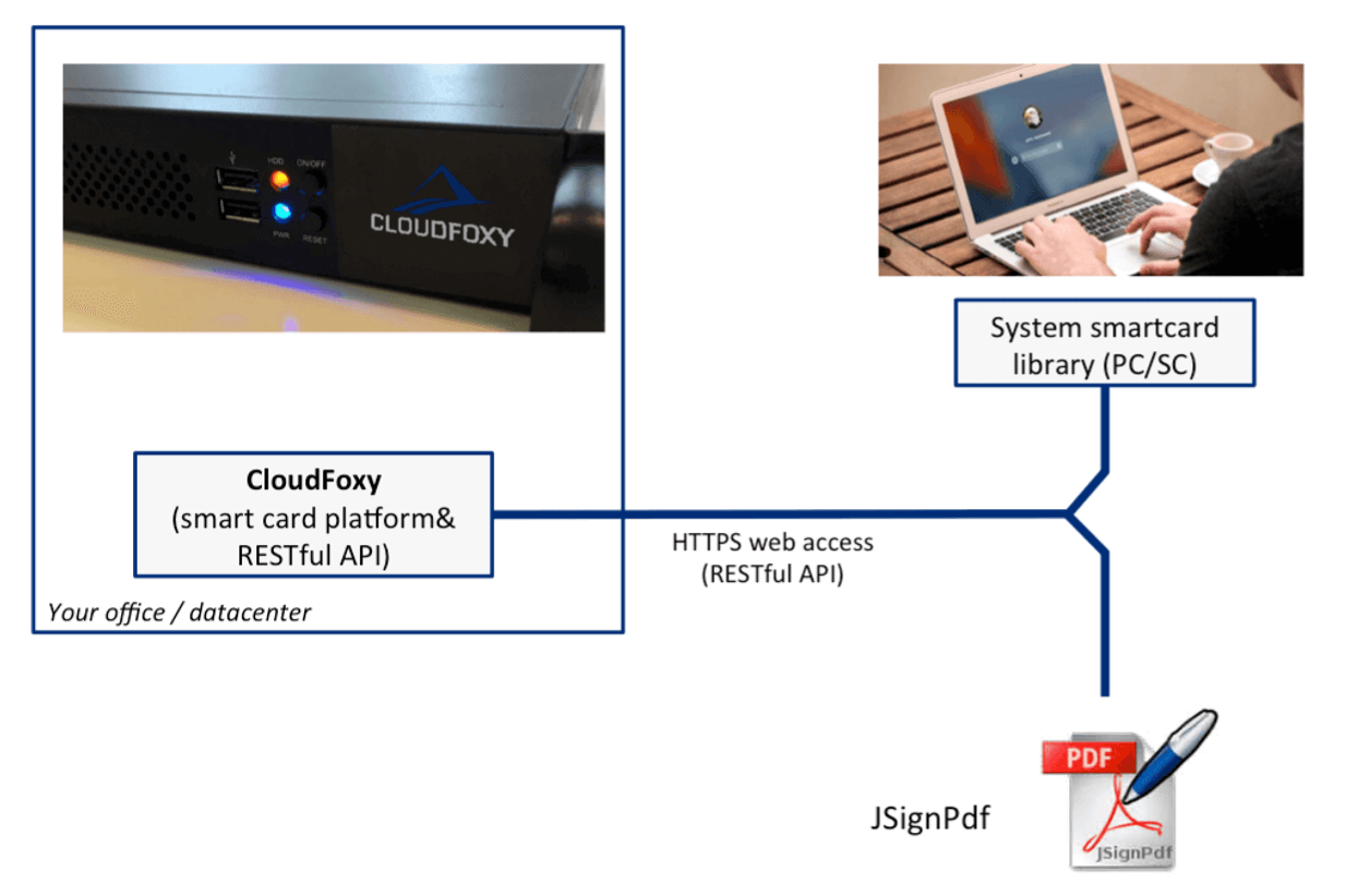 CloudFoxy integrates with JSignPdf software for digital document signing. Our integration allows use of high security smart cards, including eIDAS (electronic IDentification, Authentication and trust Services in EU).